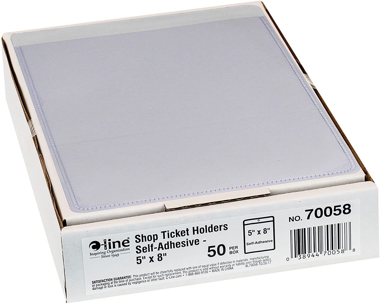C-Line Self-Adhesive Shop Ticket Holders, 5 x 8 Inches, Clear, 50 per Box (70058)