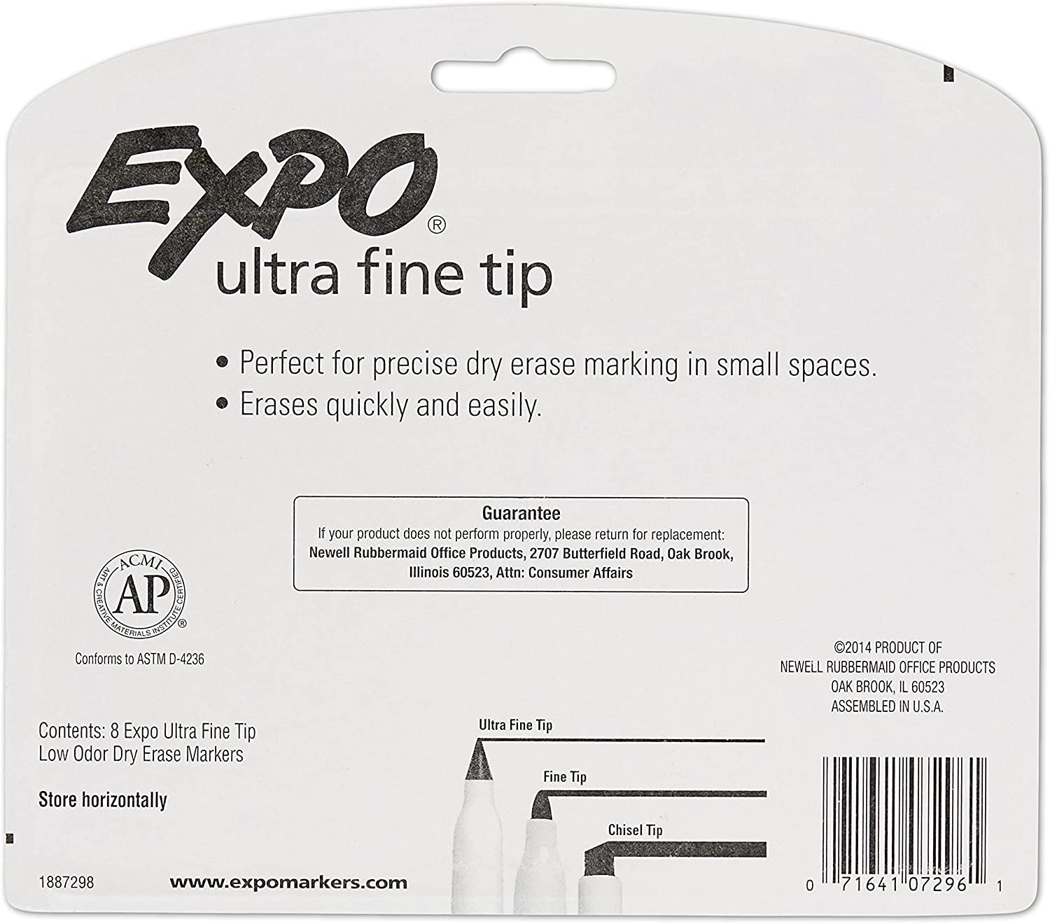 EXPO 1884309 Low-Odor Dry Erase Markers. Ultra Fine Tip. Assorted Colors. 8-Count