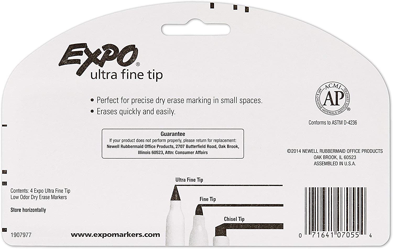 EXPO 1871774 Low-Odor Dry Erase Markers. Ultra Fine Tip. Black. 4 Count (Pack of 1)