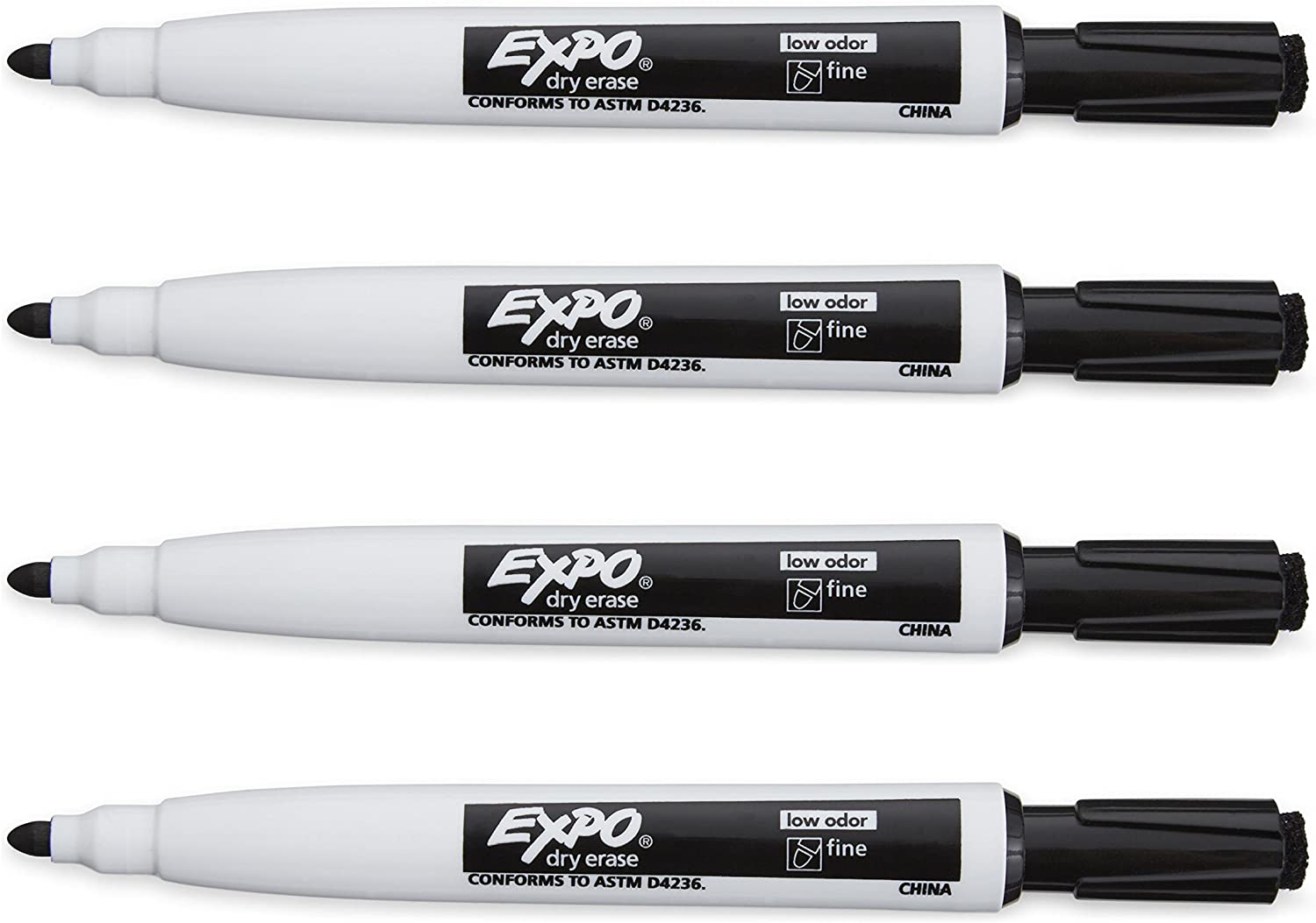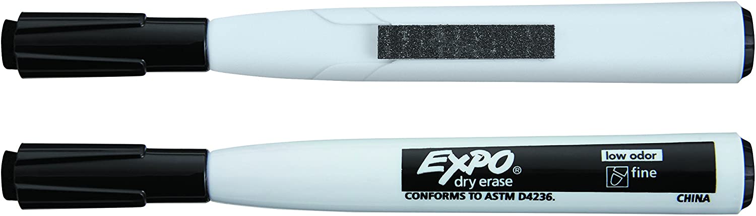 EXPO 1944745 Magnetic Dry Erase Markers with Eraser. Fine Tip. Black. 4-Count