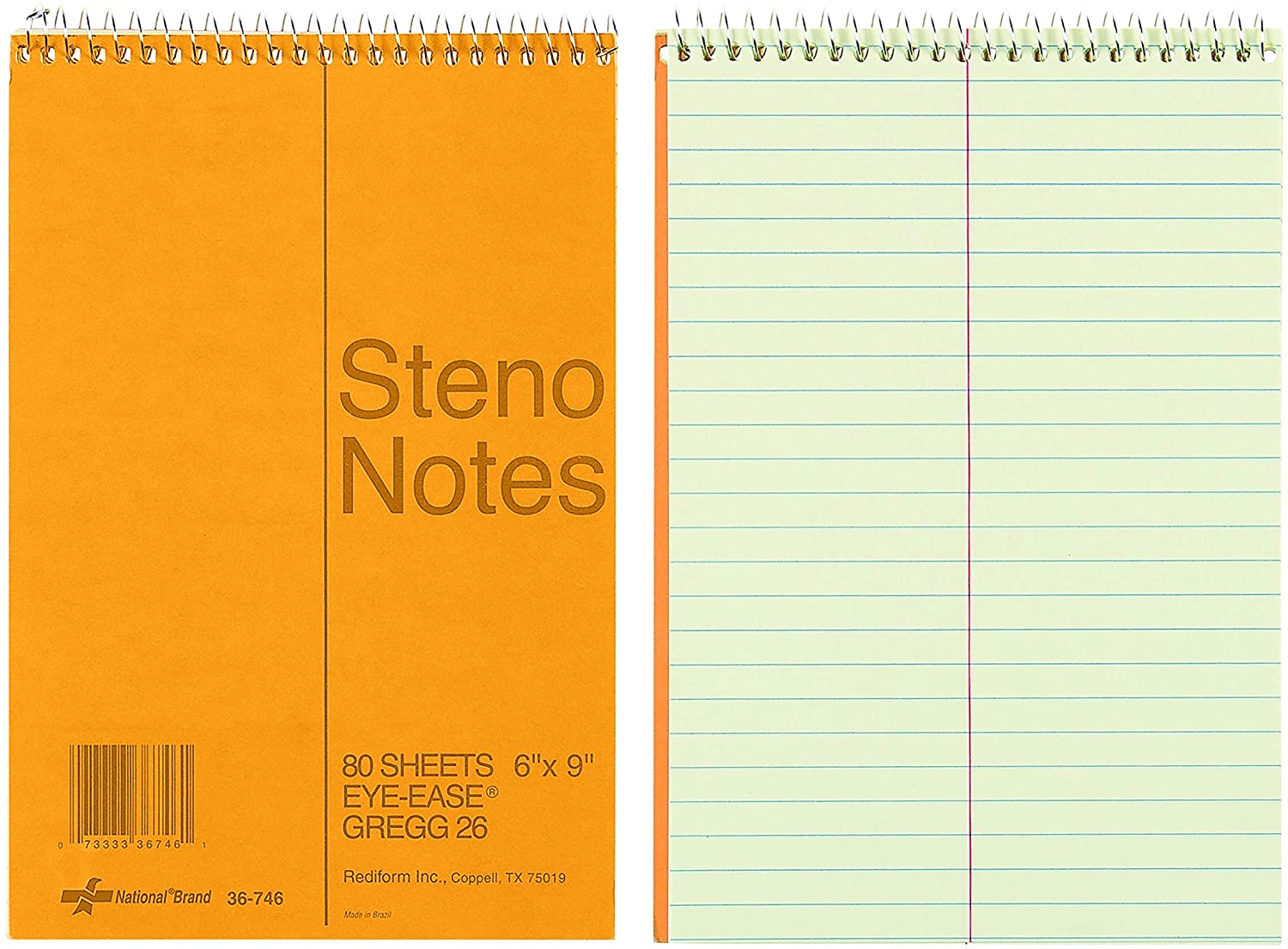 National Brown Board Cover Steno Notebook, Gregg Ruling, Green Eye-Ease Paper, 6" x 9", 80 Sheets (36746)