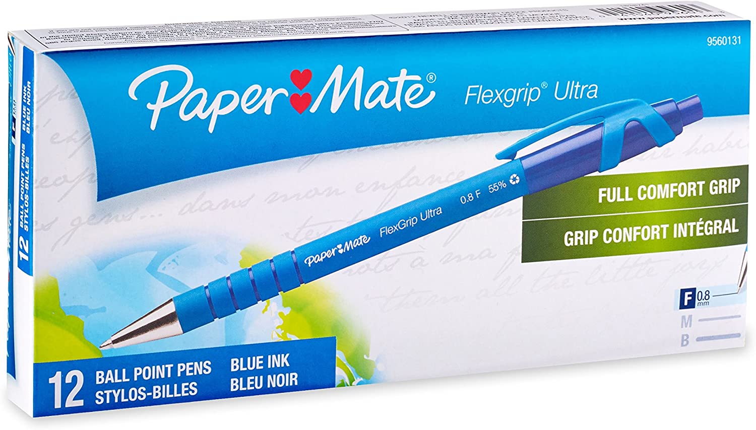 Paper Mate 9560131 Flexgrip Ultra Retractable Ballpoint Pens. Fine Point. Blue Ink. 12-Pack