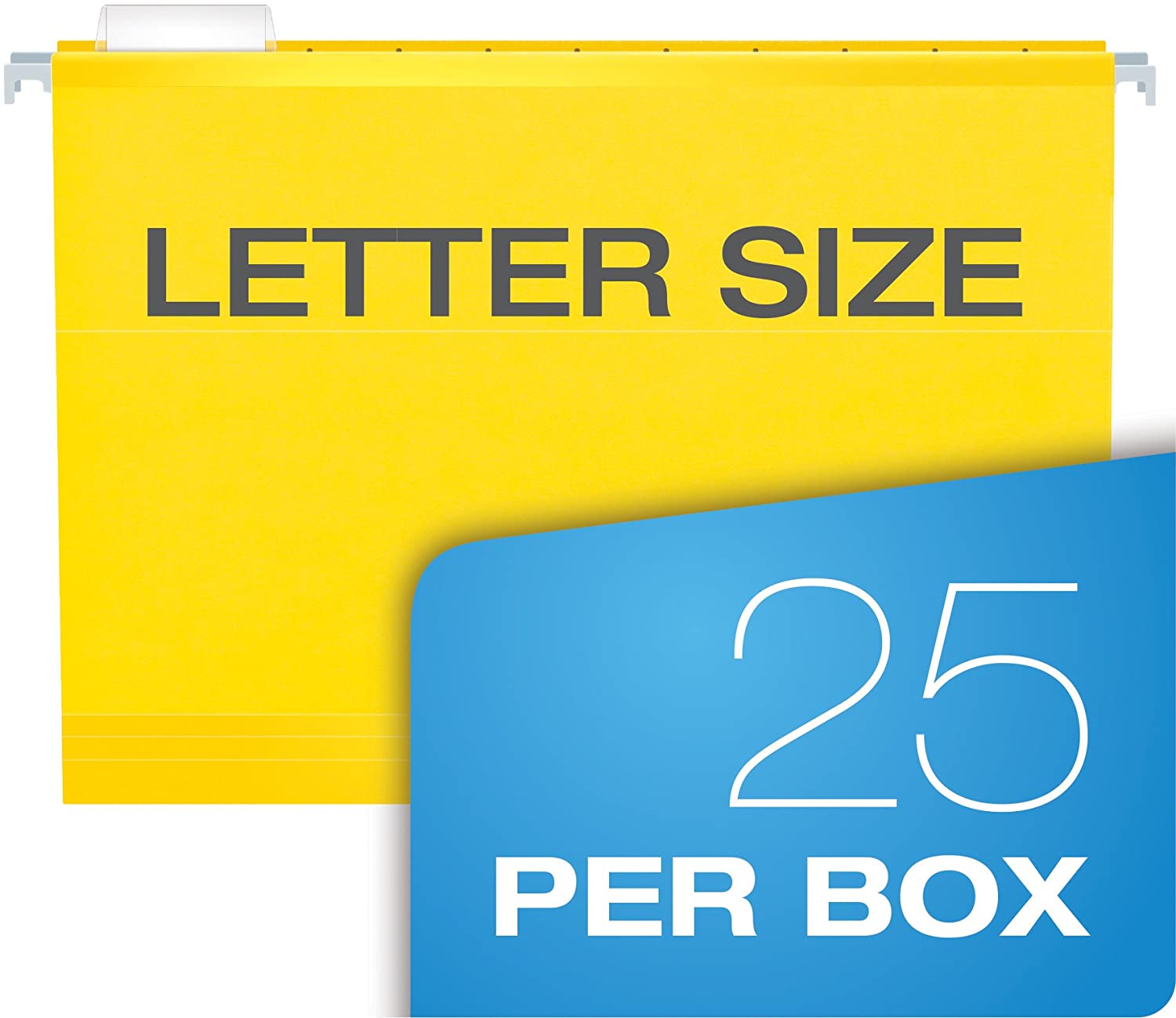 Pendaflex Reinforced Hanging File Folders, Letter Size, Yellow, 1/5 Cut, 25/BX (4152 1/5 YEL)