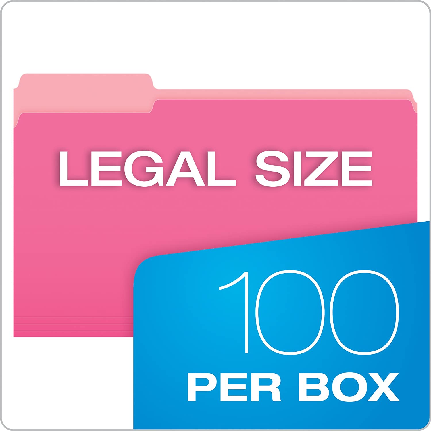 Pendaflex Two-Tone Color File Folders, Legal Size, Pink, 1/3 Cut, 100/BX (153 1/3 PIN)