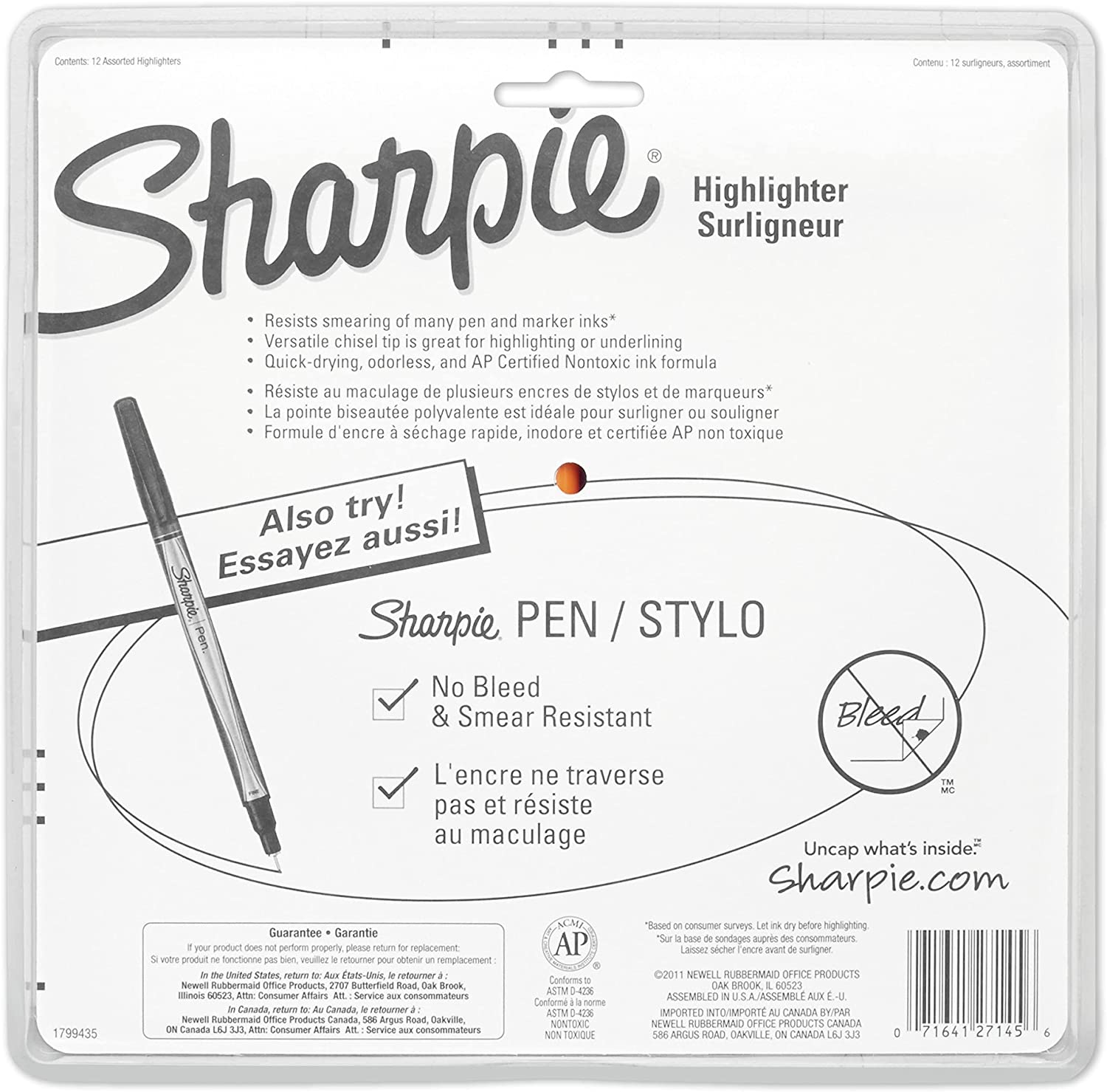 Sharpie 27145 Pocket Highlighters. Chisel Tip. Assorted Colors. 12-Count