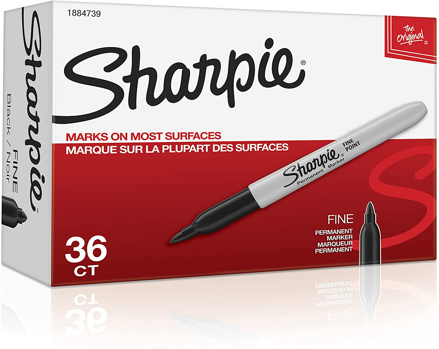 Sharpie Permanent Markers, Fine Point, Black, 36 Count