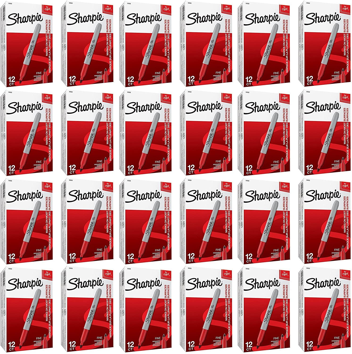 Sharpie 30002 Fine Point Permanent Marker. Marks On Paper and Plastic. Resist Fading and Water. AP Certified. Red Color. Case of 24 Dozens